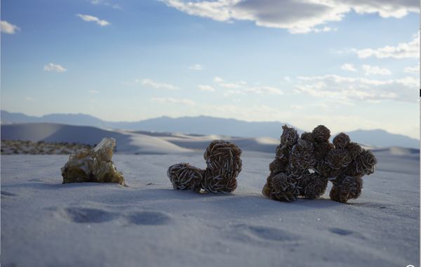 Recent explorations have been set in the arctic and the desert—Alaska’s Wrangell St. Elias National Park, Iceland’s glacial lake Jökulsárlón, and New Mexico’s White Sands National Monument— where notions inherent to ice and sand such as, impermanence, state change, and slipperiness are the focus of my questioning. https://elhanson.com